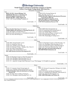 Students who demonstrate success in the Pre-Nursing Pathway will be advised to apply to the BSN program during the Spring semester before beginning the BSN program in the following Fall semester. Transfer students also are eligible for admission to the BSN program. Consult the BSN Admission Guide for more information about admission for Heritage Pre-Nursing Pathway students and for Transfer Students.