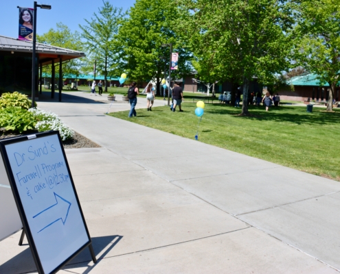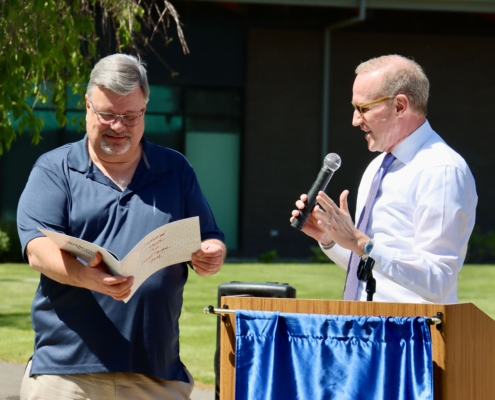 VP of Advancement David Wise then presented a memory book to Dr. Sund, followed by Sund sharing a few words of wisdom with the attendees. Wise later unveiled a bench with a plaque dedicated to Dr. Sund.